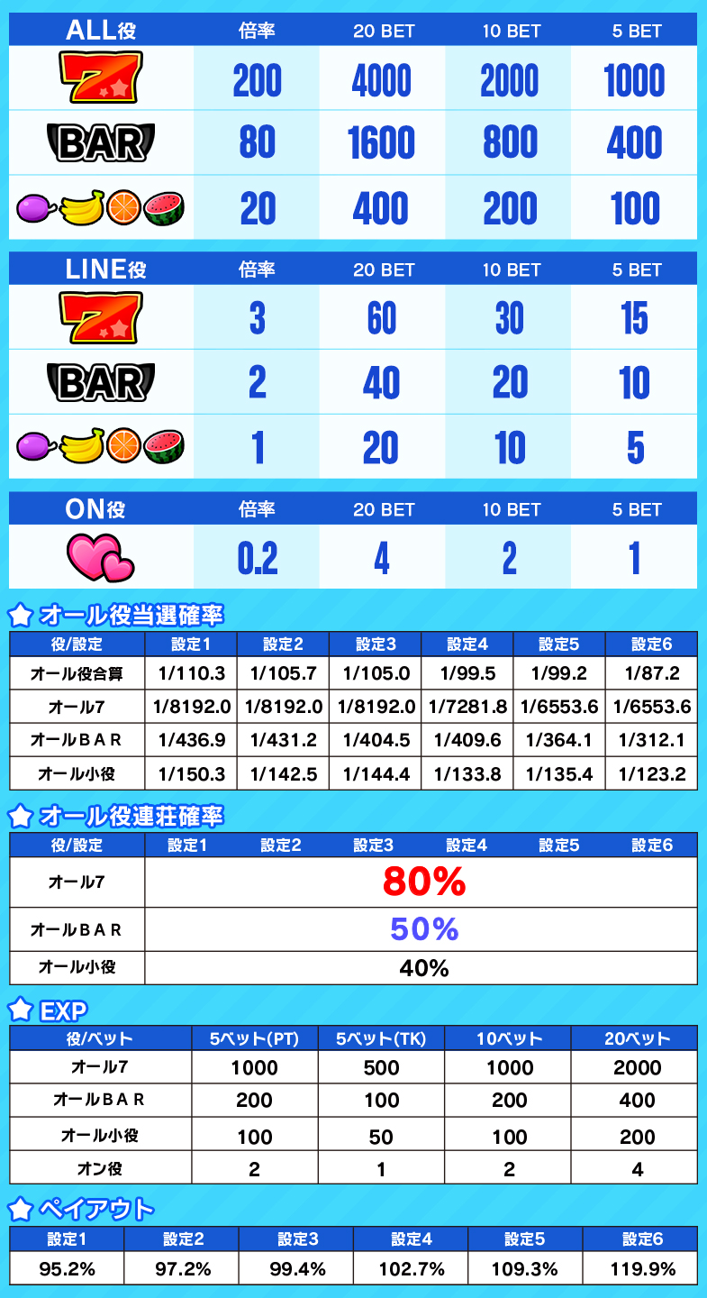 設定が高い程メダルを獲得する可能性が高くなります。詳細はスペック表にてご確認ください。