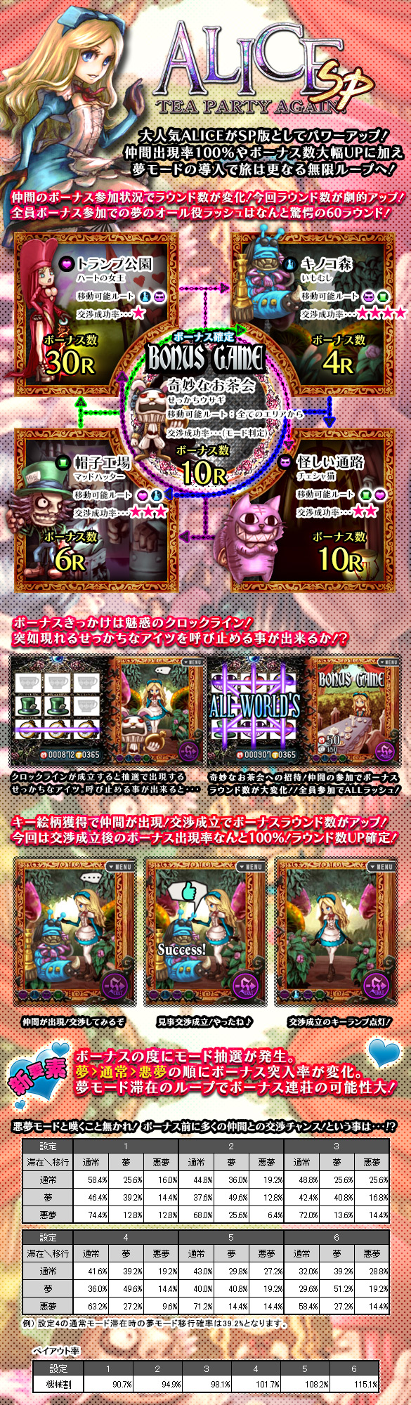 8ラインスロット「ALICE SP」はMAXベット専用機です(MAXベットは5枚)。