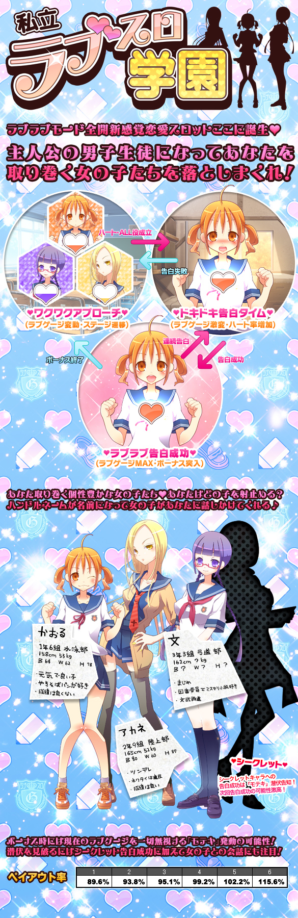 ・終了:8ラインスロット「私立ラブスロ学園」を終了します。獲得した経験値はこのボタンを押したときに反映されます。