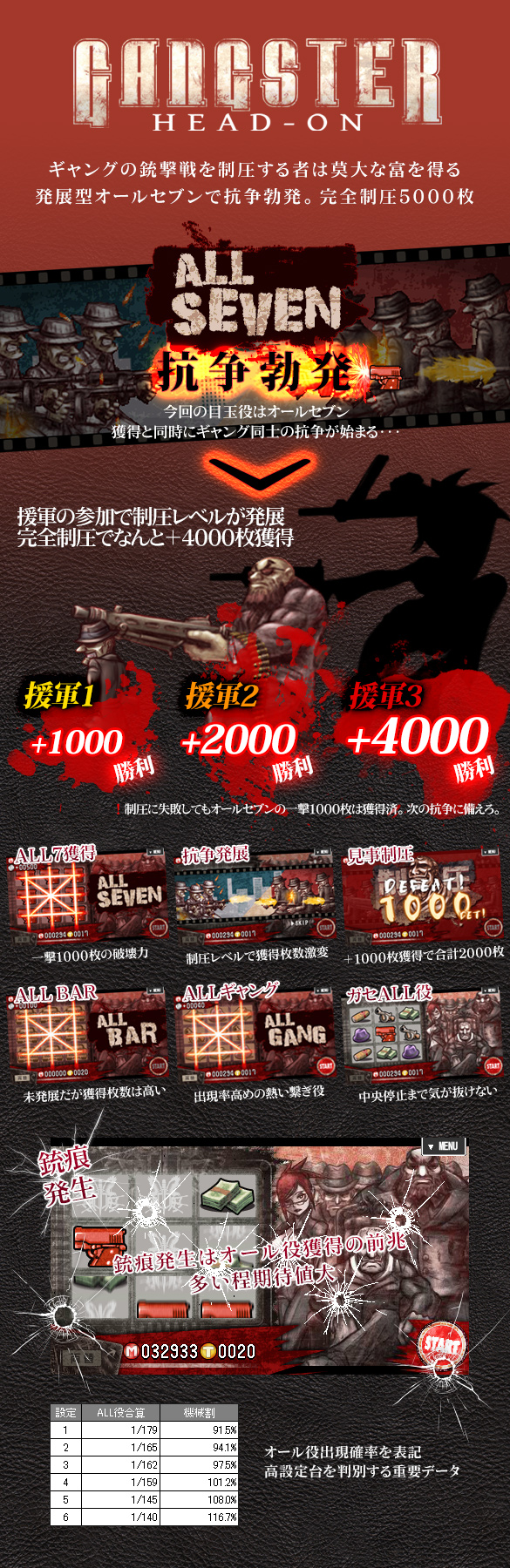 8ラインスロット「ギャングスター」はMAXベット専用機です(MAXベットは5枚)。