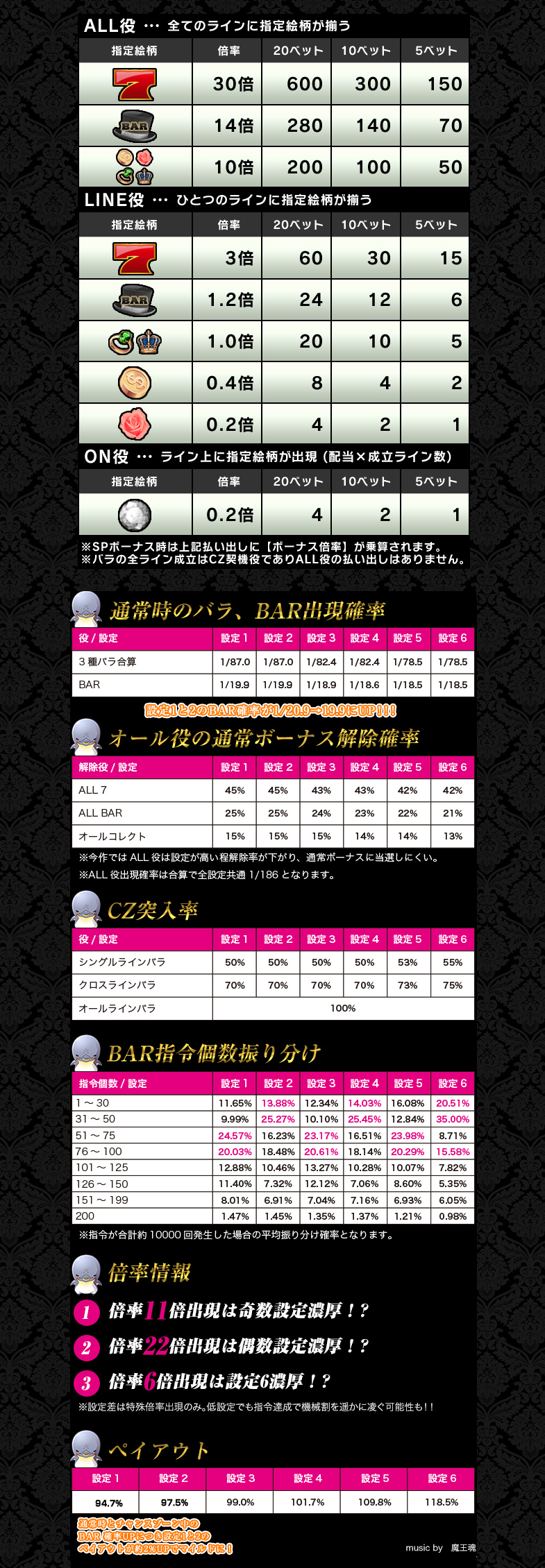 機種のスペックや、省電力モード等の性能を制限する機能がONの場合、リール停止や演出が正常に表示されない可能性がございます。
