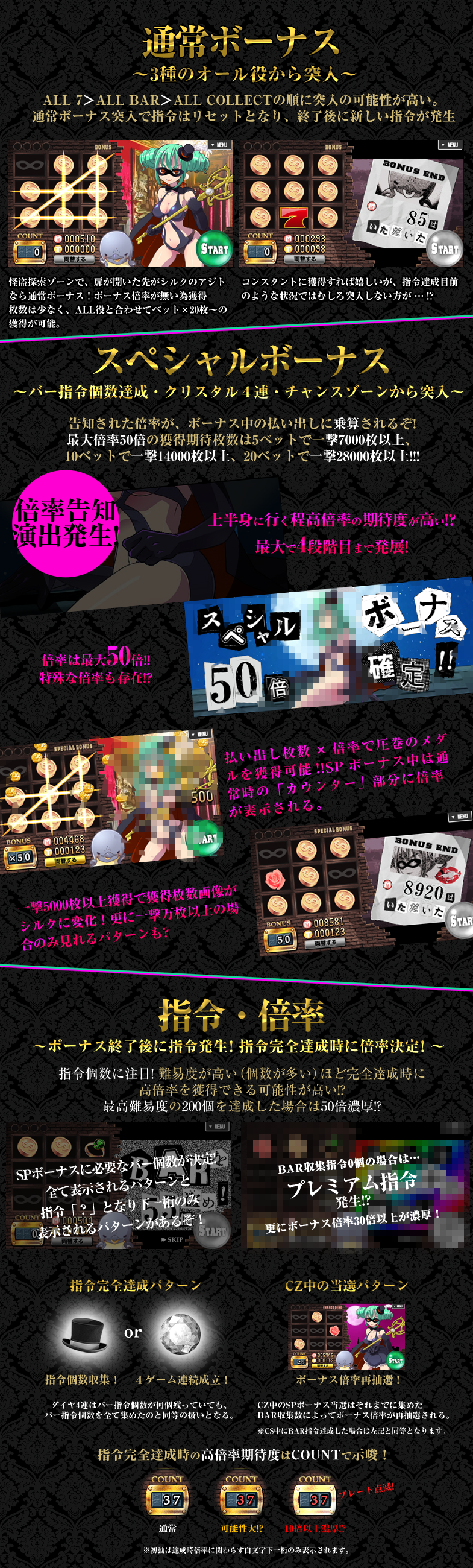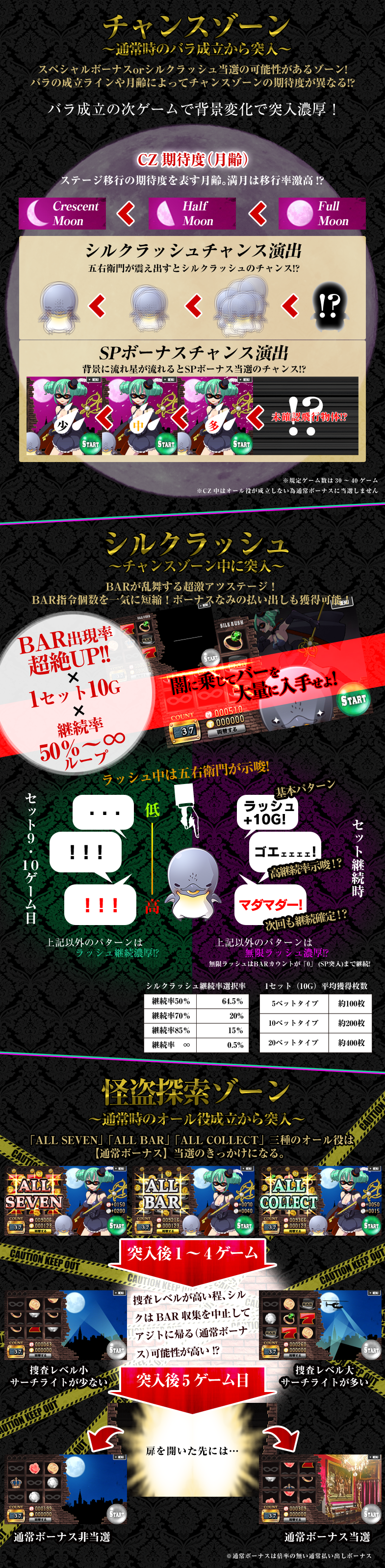 8ラインスロット「怪盗少女シルク」はMAXベット専用機です(MAXベットはポイントエリアの場合5ポイントのみとなります。チケットエリアの場合は5枚/10枚/20枚の3種類の台からお選び頂けます)。