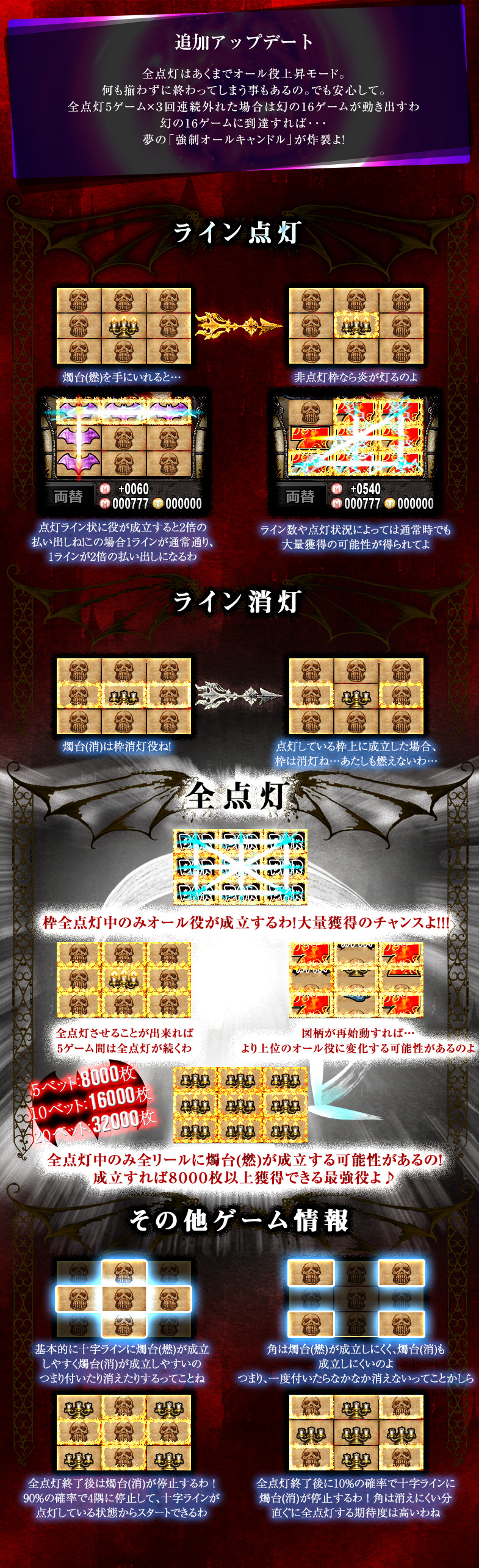 8ラインスロット「THE MONSTERS-ヴァンパイア編」はMAXベット専用機です(MAXベットはポイントエリアの場合5ポイントのみとなります。チケットエリアの場合は5枚/10枚/20枚の3種類の台からお選び頂けます)。