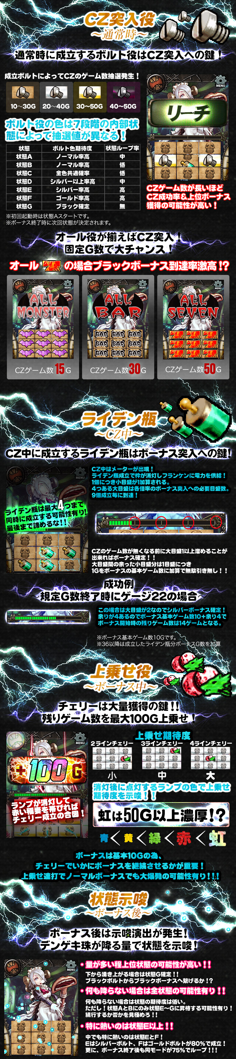 ・終了:8ラインスロット「THE MONSTERS-フランケン編」を終了します。獲得した経験値はこのボタンを押したときに反映されます。