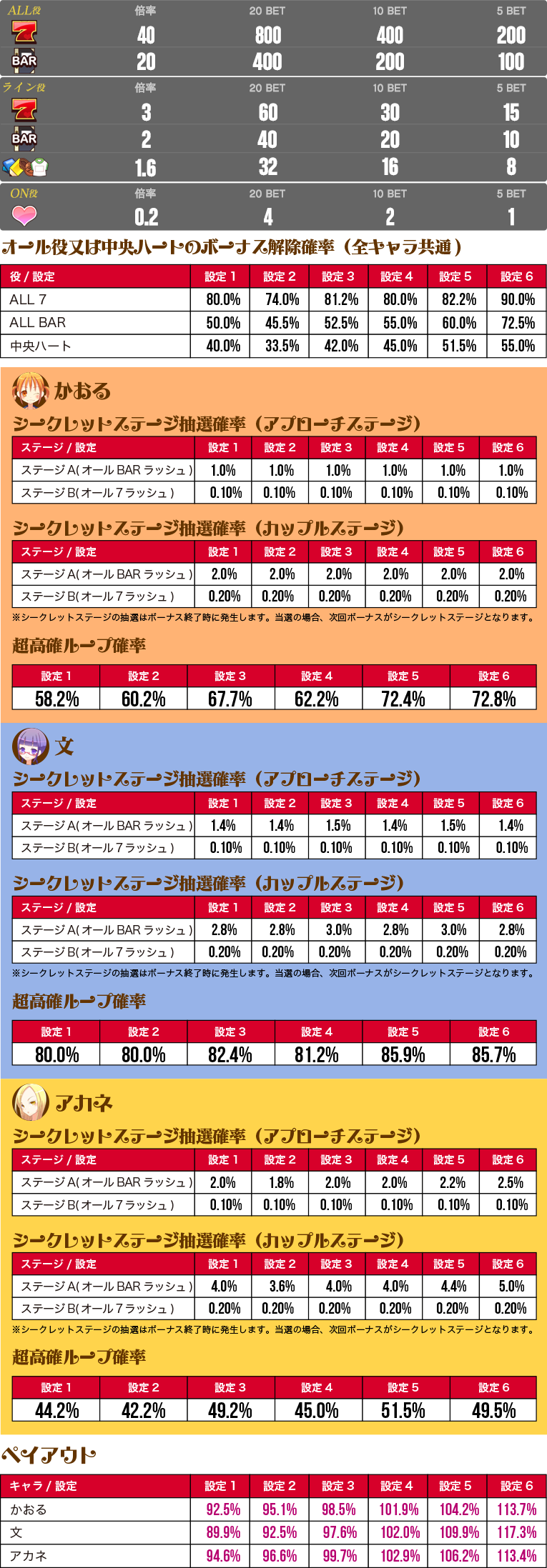 設定が高い程メダルを獲得する可能性が高くなります。詳細はスペック表にてご確認ください。