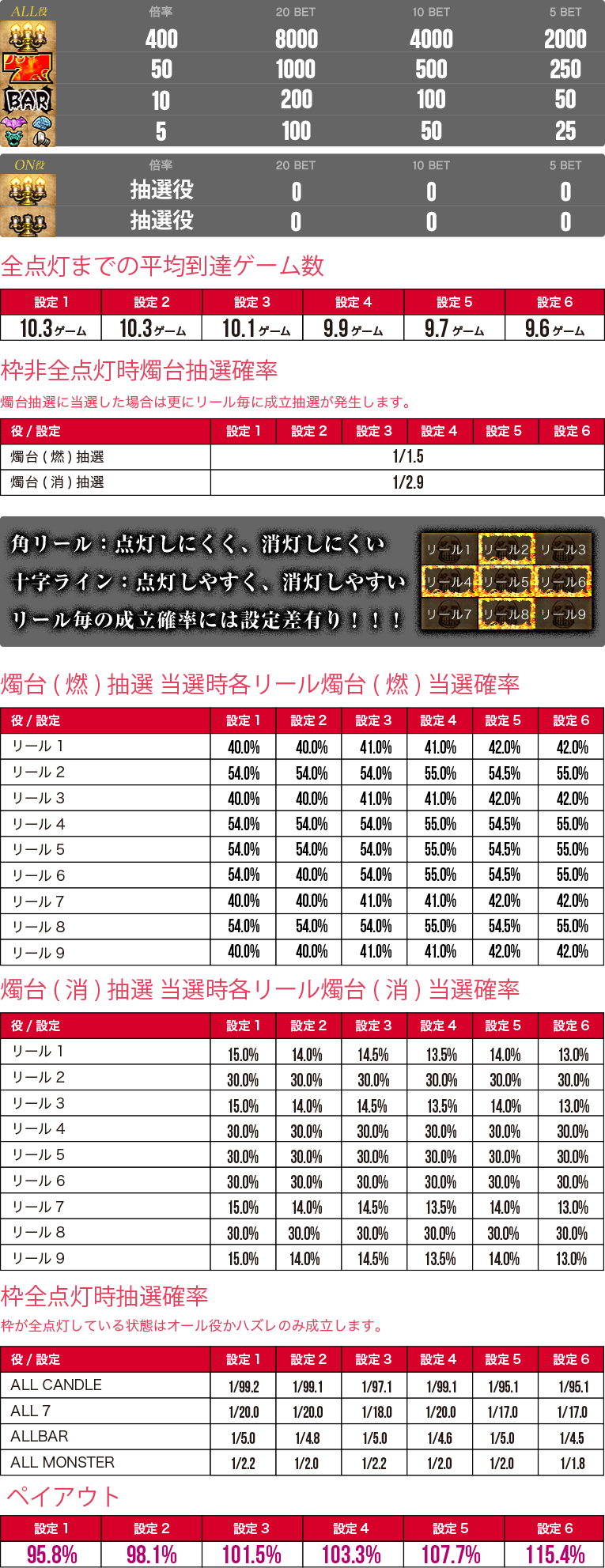 設定が高い程メダルを獲得する可能性が高くなります。詳細はスペック表にてご確認ください。