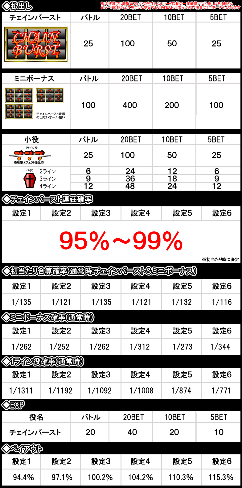 設定が高い程メダルを獲得する可能性が高くなります。詳細はスペック表にてご確認ください。