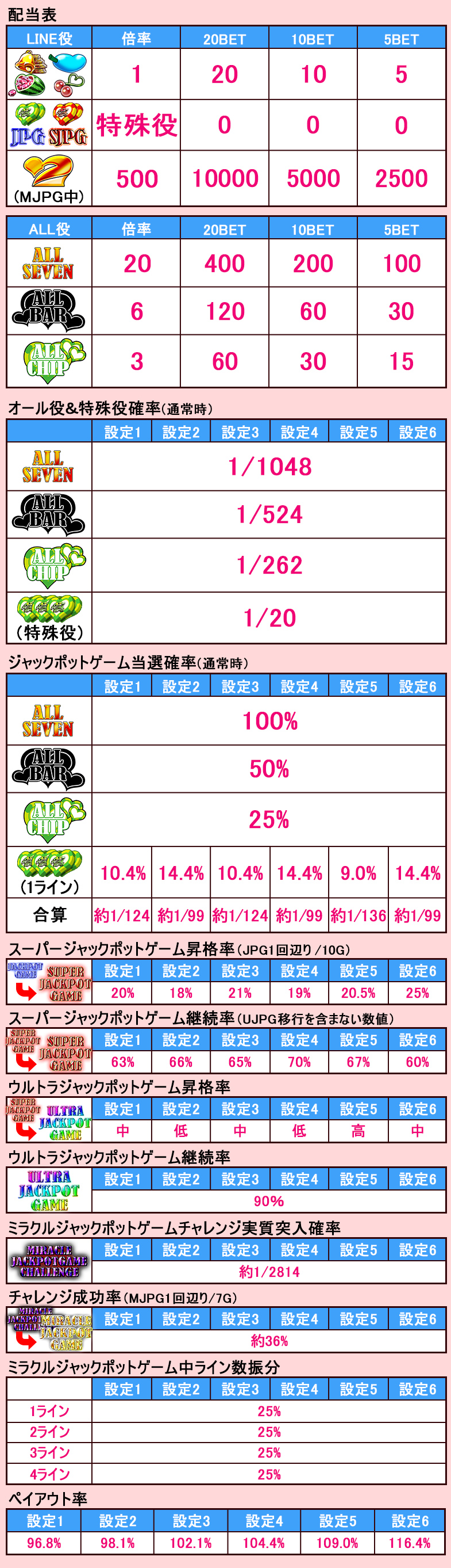 設定が高い程メダルを獲得する可能性が高くなります。詳細はスペック表にてご確認ください。