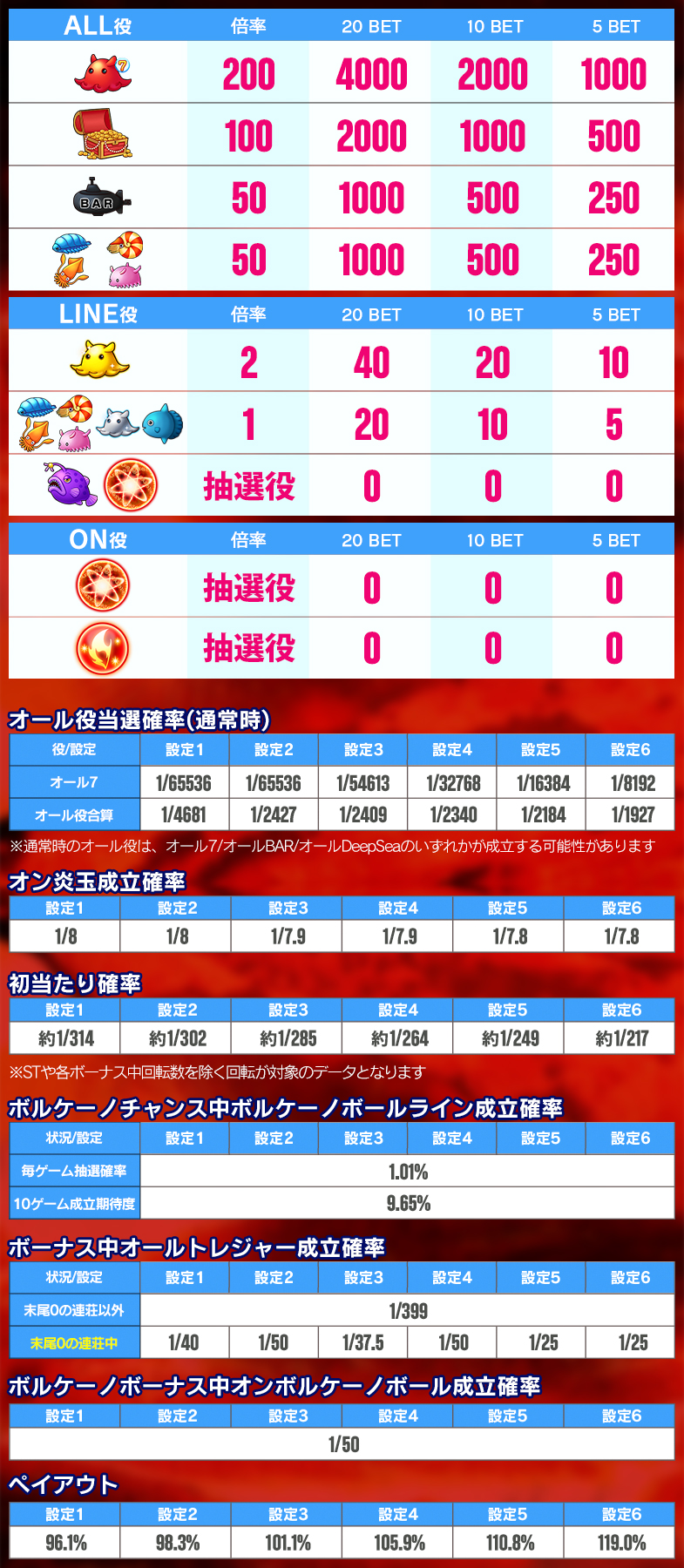 本ゲームはベット制を導入しており、「5ベット」「10ベット」「20ベット」の台をお選び頂く事が出来ます。