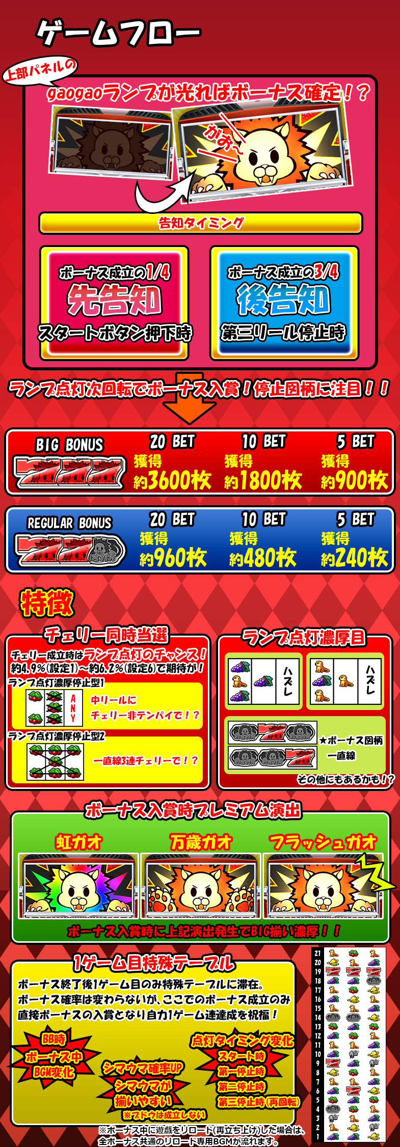 ・終了:8ラインスロット「GAOGAO‼~ガオガオ~」を終了します。獲得した経験値はこのボタンを押したときに反映されます。