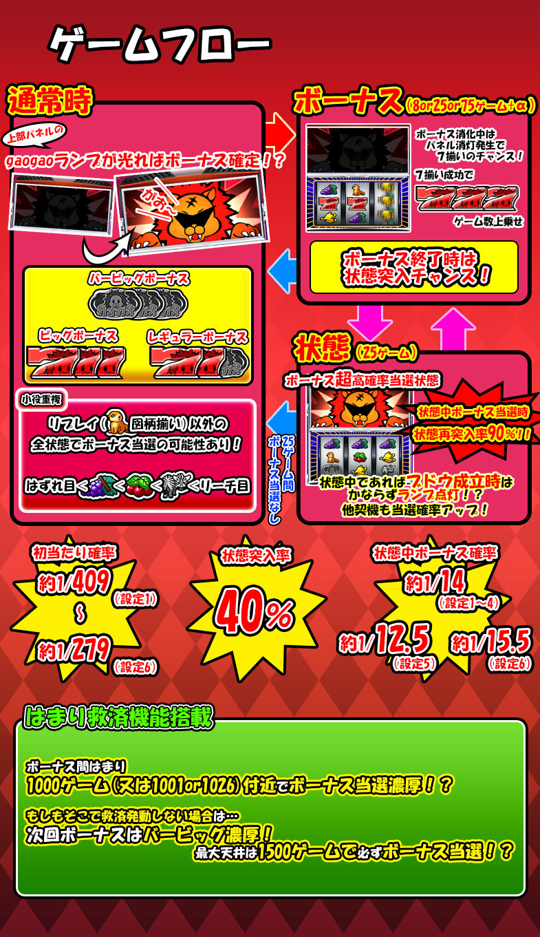 ・終了:8ラインスロット「GAOGAO‼BLACK」を終了します。獲得した経験値はこのボタンを押したときに反映されます。