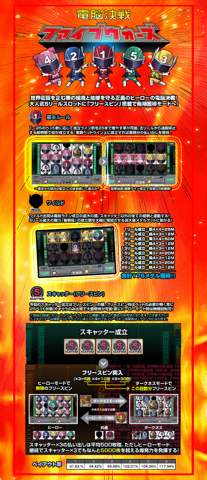5リールスロット「電脳決戦 ファイブウォーズ」を終了します。