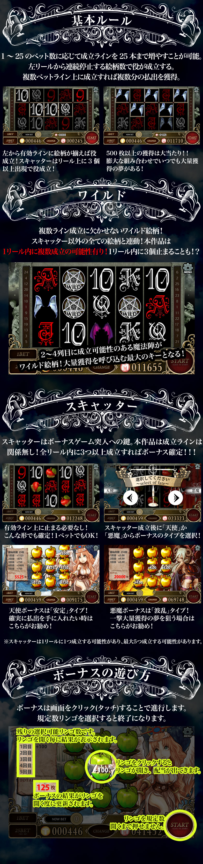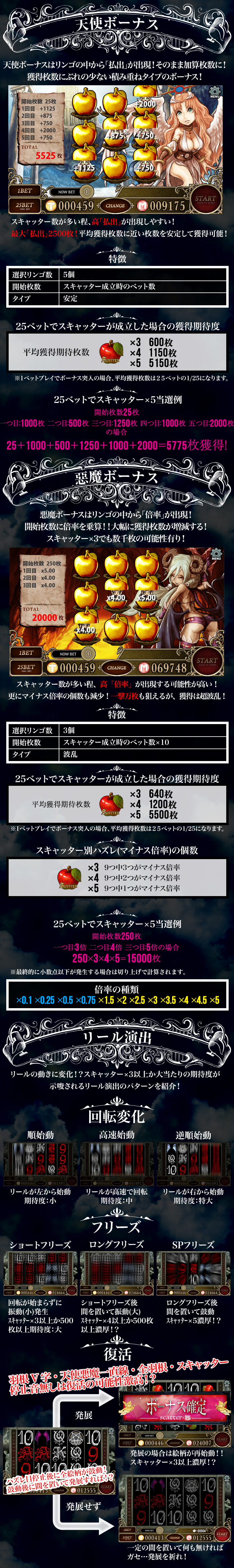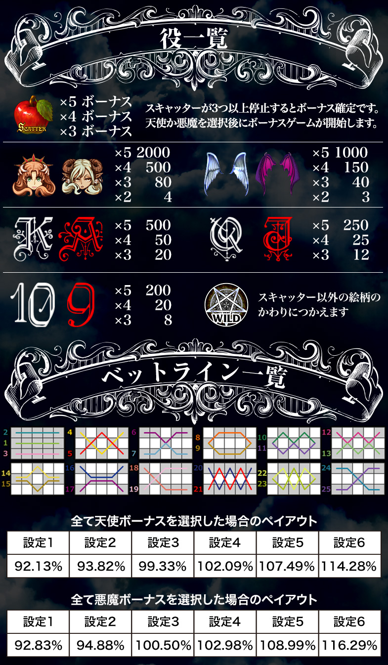 ※ 天使か悪魔にレートはありません。1~25ベットスロットとなります。