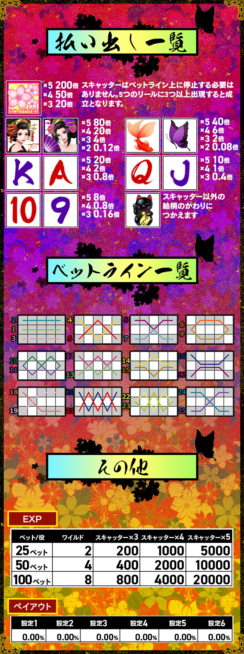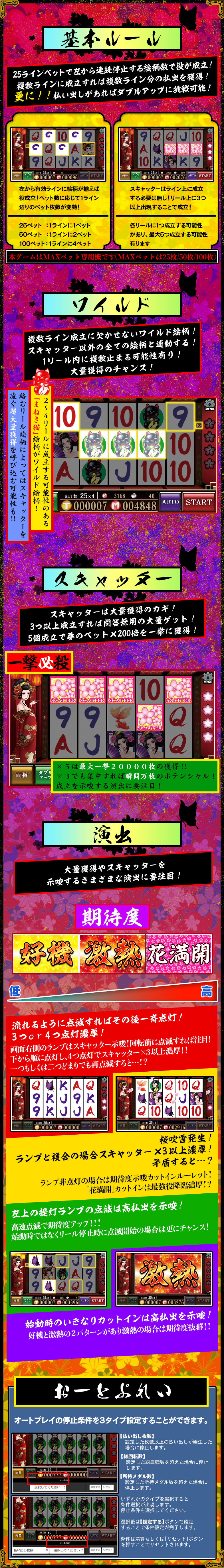 5リールスロット「桜花伝」はMAXベット専用機です(25枚/50枚/100枚の3種類の台からお選び頂けます)。 -