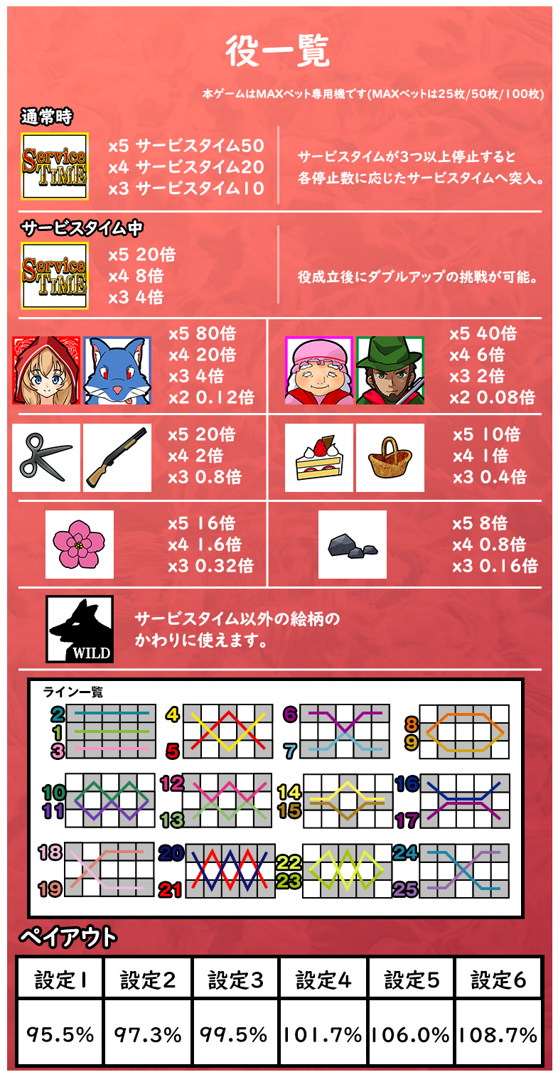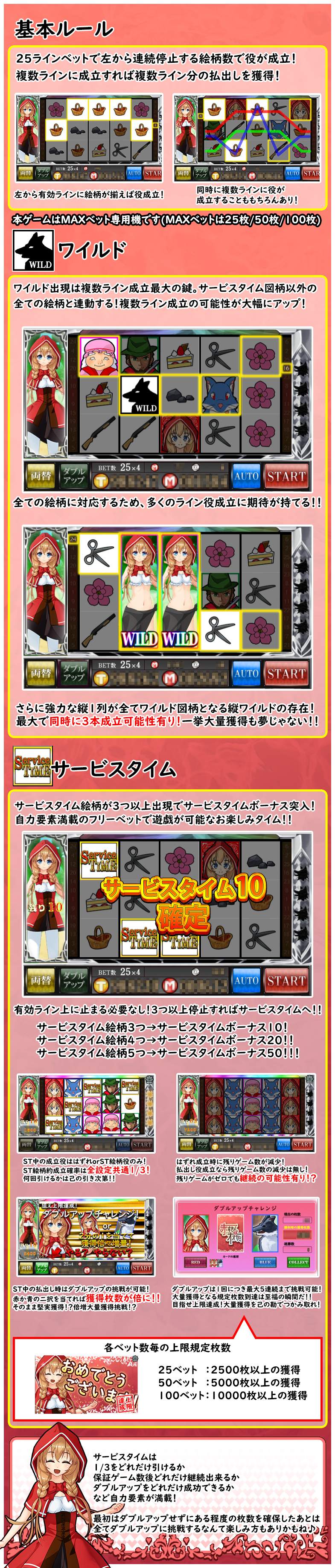「5リールスロット」はMAXベット専用機です(25枚/50枚/100枚の3種類の台からお選び頂けます)。 -