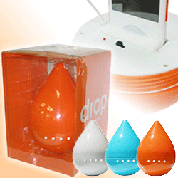 drop speaker本体の中にMP3プレイヤーをセットし、本体内部から伸びているミニプラグをプレイヤーに差し込んで、カバーをするだけ。スピーカーの音量を調節するボタンもついています。
