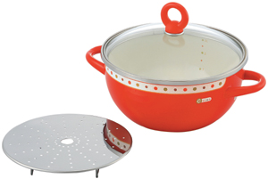 チャオゆで蒸し兼用鍋(23cm)トマトレッド 13870G